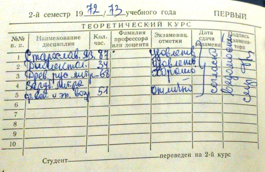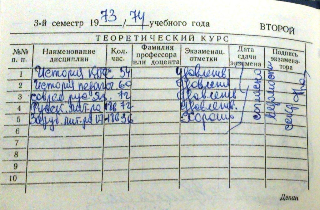 Давайте тоже разглядим зачётку, где «полно четвёрок и пятёрок»: