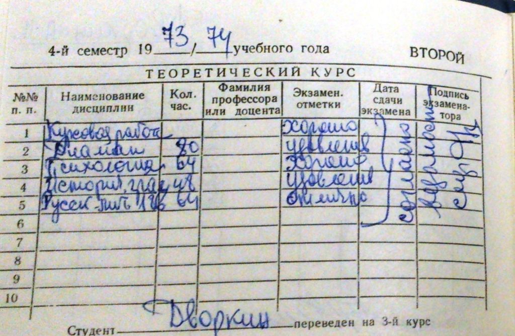 Вот это очень важный момент. Александр Леонидович снова пытается оправдать своё отчисление из вуза «идеологическим несоответствием с передовой советской молодежью», хотя на самом деле имели место непосещаемость и неуспеваемость, как следует из документов, а бывшие сокурсники Дворкина четко заявляют, что причиной отчисления стали наркотики — студент-наркоман, не посещающий занятия, в институте действительно нежелателен.